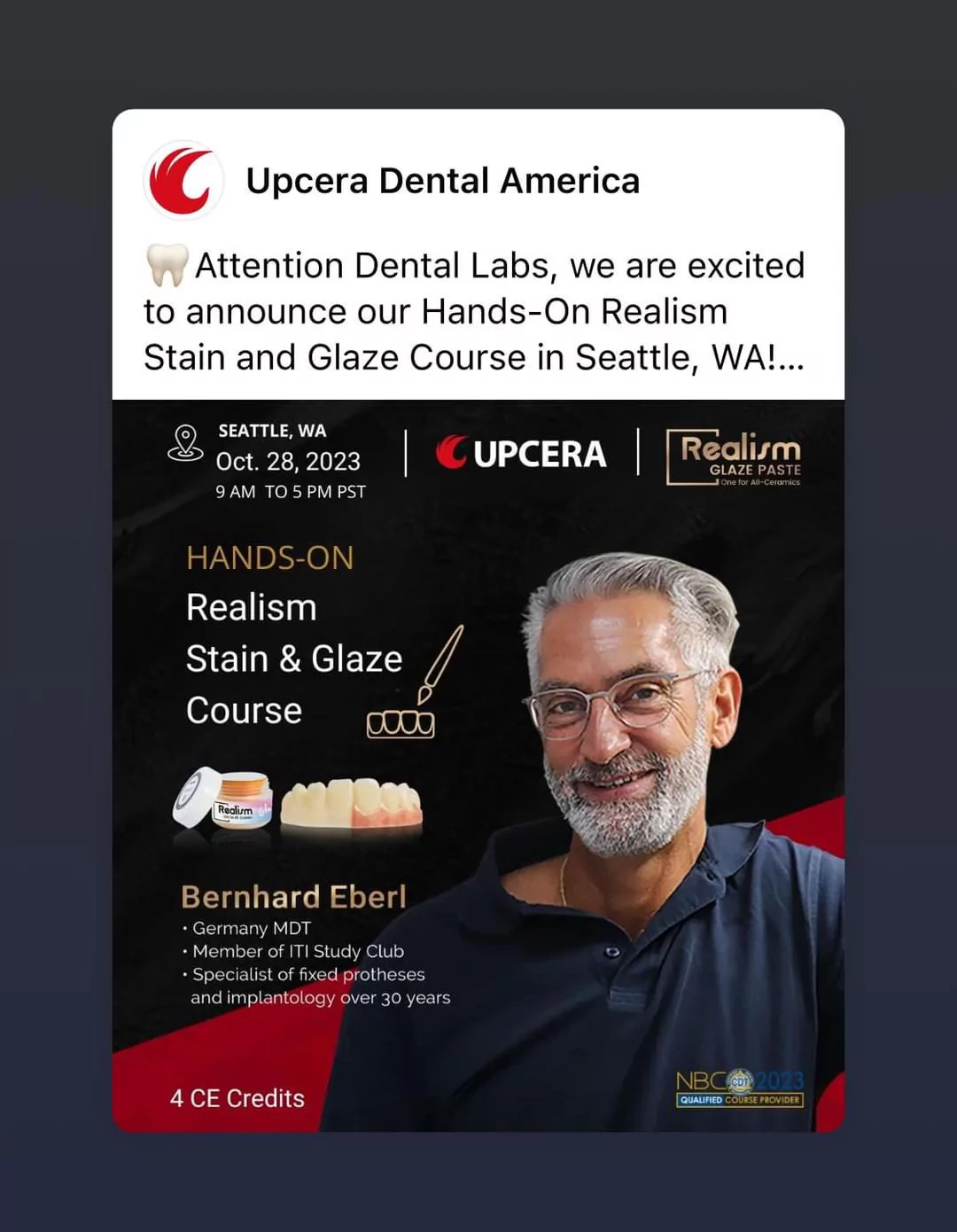 Während meines Aufenthalts ins Seattle gab ich zum Beispiel einen tiefen Einblick in die unterschiedlichen Verwendungszwecke des Upcera Realism Stain and Glaze Kit sowie die entsprechenden Umsetzungsmöglichkeiten, natürlich aussehende Restaurationen für Einzelkronen und Brückengerüste aus Zirkoniumdioxid herzustellen.